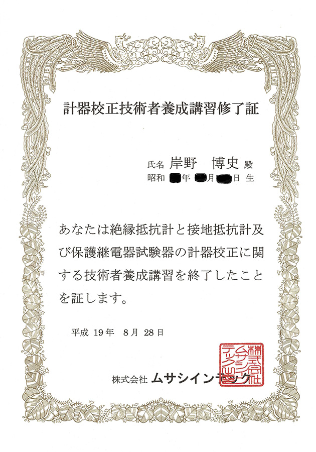計器構成技術者養成講習修了証