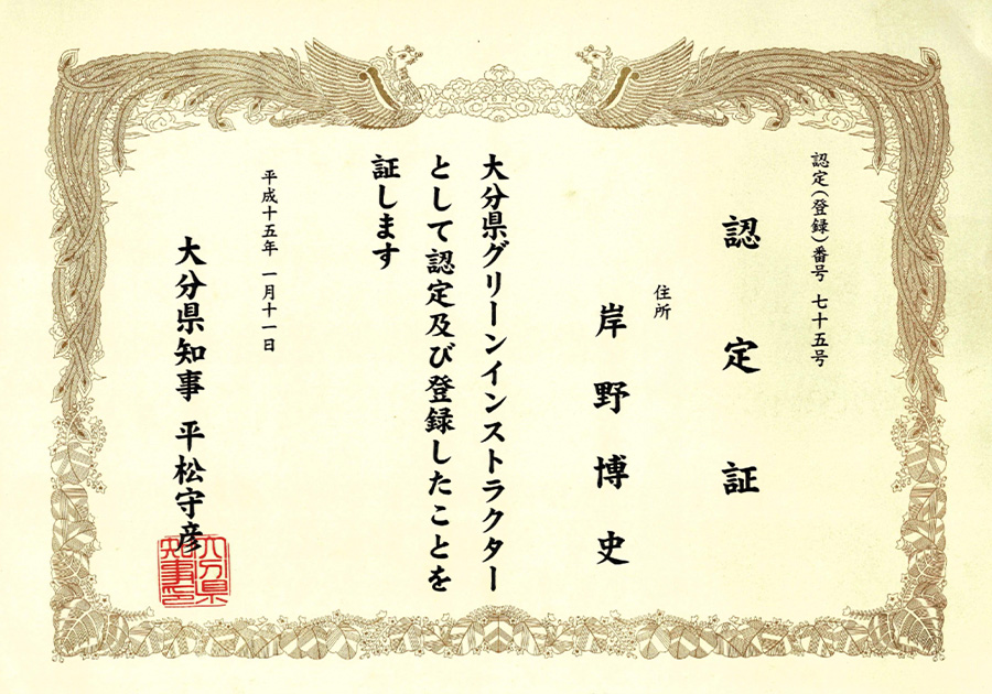 | 平成15年1月11日 | グリーンインストラクター認定証 |